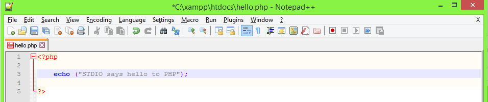 . - Dùng Notepad++ (có thể sử dụng các phần mềm soạn thảo khác) mở file hello.php và xây dựng chương trình sau đó lưu lại.
